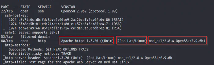 In the screenshot above, you saw that the version of Apache is 1.3.20 which is running on Red-Hat Linux with mod_ssl plugin of version 2.8.4. This is an important information to note down.