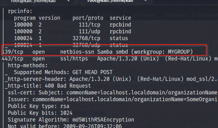 We also saw a service running at port 139 which is the SMB. Likewise, this might be a potential information. There are other information available as well.