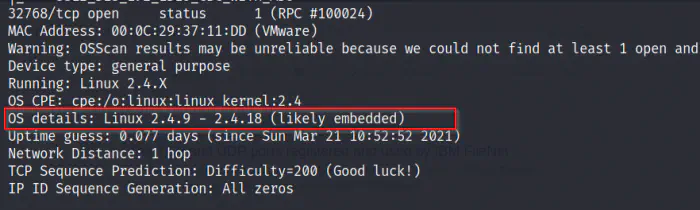 So, as we saw above, there are three hosts on the network. My inspection is that the first one is the gateway for the NAT, the second one is the attacker machine as we found out using the IP address and the third one is the target. In this way, we narrowed down the search.