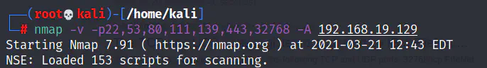 In the above command, -v means verbose output and -p- tells Nmap to scan all ports of 192.168.19.129. This will gives us the following after the code execution.