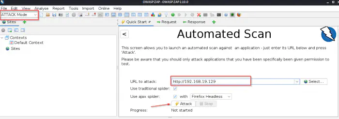 There is a tool called OWASP ZAP, which will look for any vulnerabilities in your web app. So, let’s use the tool in attack mode.