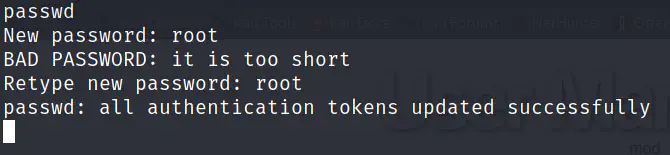During our Nmap scans, we identified that there is an SSH service running on the machine as well. Now, we have already entered the system, we can change the root password by using command passwd.