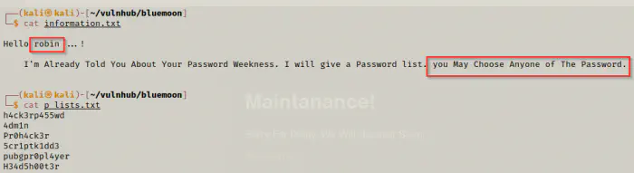 As we can see from above, there might be a user robin who has password from the file p_lists.txt. Previously, we also identified that SSH was open.