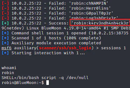 Now, we can bruteforce SSH for user robin with the help of the passwords’ list. Hence, I could use either hydra or msfconsole for this purpose.