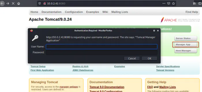 Luckily, we have plain passwords on the file. Also, I am not sure if this is intended by the author. Because this is the first time I am seeing plaintext passwords during the webserver enumeration. Most of the time, at least they are encrypted with very loose encryption. However, our purpose is to get as much information as easily we can. Likewise, in the Nmap results, we saw that there is a tomcat server running at port 8080. I know that tomcat has a mechanism to manage the servers using their web app. Of course, to do such a thing, that requires authentication.