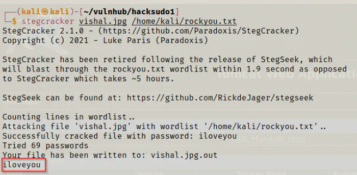 stegcracker vishal.jpg /home/kali/rockyou.txt