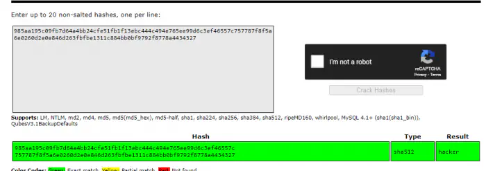 As we can see above, we have a hashed password of the user vishal. So, I copied the hash and tried cracking it on the crackstation.