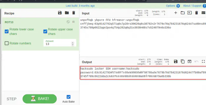 We can see that there are words which are jumbled. Hence, this cannot be a hash. Also, since it has words, the first thing that came into my mind was caesar cipher. Hence, I opened the cyber chef and used the module “rot13” in the recipe.