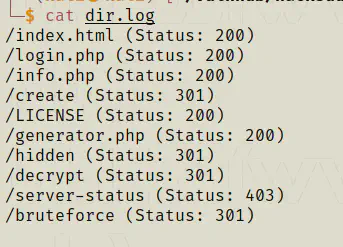gobuster dir -u http://10.0.2.44/ -x txt,php,html --wordlist /usr/share/wordlists/dirbuster/directory-list-2.3-medium.txt -o dir.log