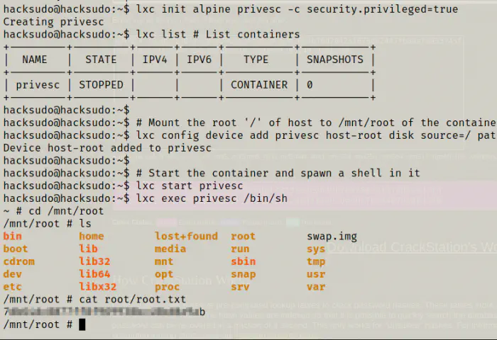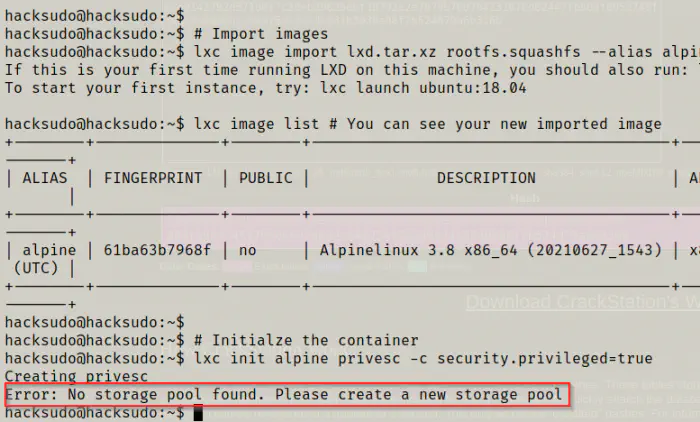 sudo /home/kali/go/bin/distrobuilder build-lxd alpine.yaml -o image.release=3.8