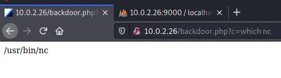 Hence, I created a php file backdoor.php which takes a GET parameter ‘c’ where we can execute system commands. For example, we can check if the target has netcat or not.