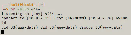 Then, I tried to spawn reverse shell. So, I listened on the port 4444 of the local machine.