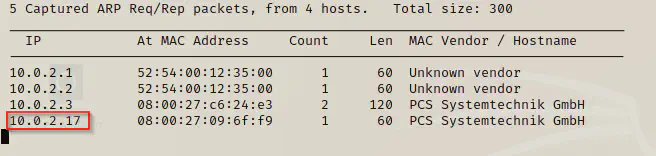 sudo netdiscover -i eth0 -r 10.0.2.1/24
