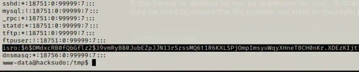 I copied the hash of the user isro to a new file in local machine and ran john the ripper.