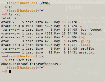 I switched to the user isro and got the flag.