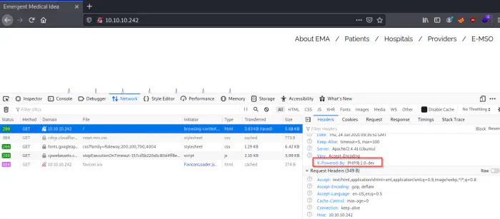 When I opened the developer tools of the browser, I found out that the web server using php 8.1.0-dev.
