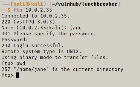 Since we found the password to log in as jane to the FTP server, I proceeded with the login.