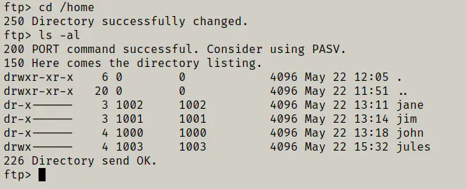 I once again logged into the FTP server and found out that the current directory is /home/jane of the target. That means, the root of the target is served in the FTP server.