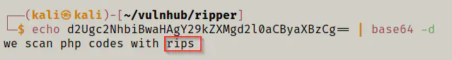 echo d2Ugc2NhbiBwaHAgY29kZXMgd2l0aCByaXBzCg== | base64 -d