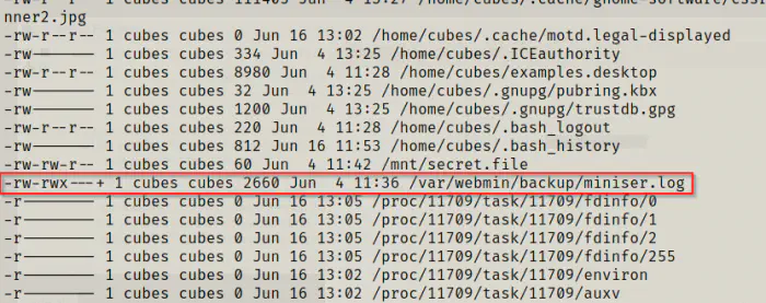 Here, we have a different user. So, I decided to look for files belonging to the user cubes that I have read access to.