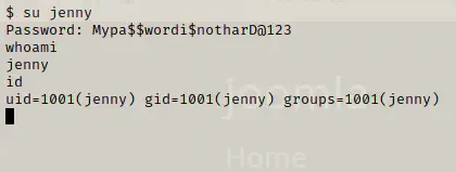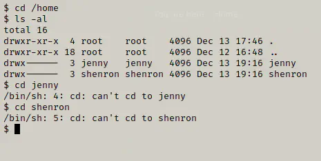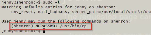 However, we don’t have any flag in jenny’s directory. In this case, we have to find a way to switch to shenron. Let’s first look at the sudo rights of jenny.