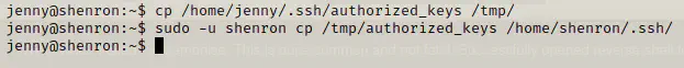 sudo -u shenron cp /tmp/authorized_keys /home/shenron/.ssh/