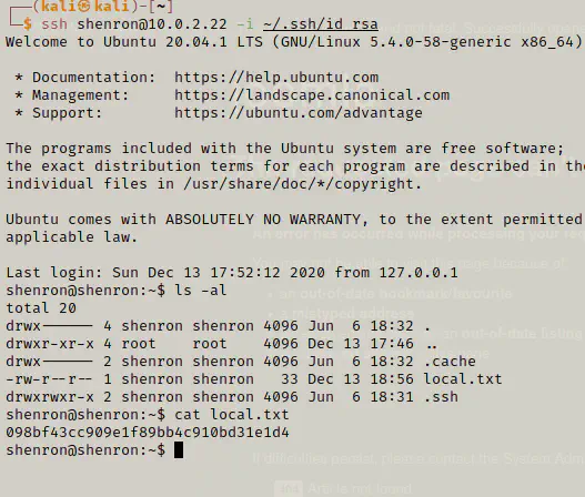 ssh shenron@10.0.2.22 -i ~/.ssh/id_rsa