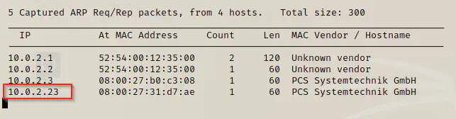 sudo netdiscover -i eth0 -r 10.0.2.1/24