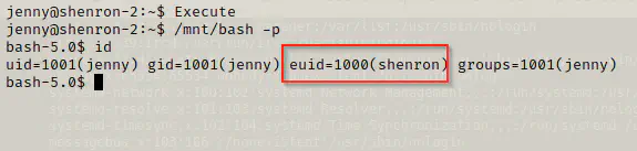 In a simple language, we can execute the new bash binary as the user shenron.
