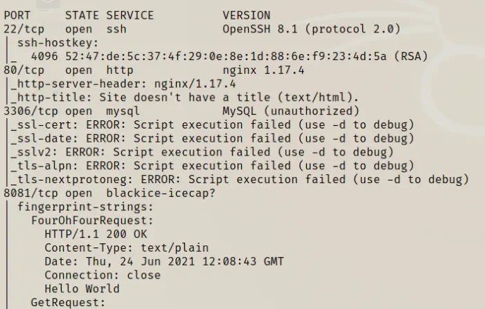 Next, I scanned the open ports on the target machine.