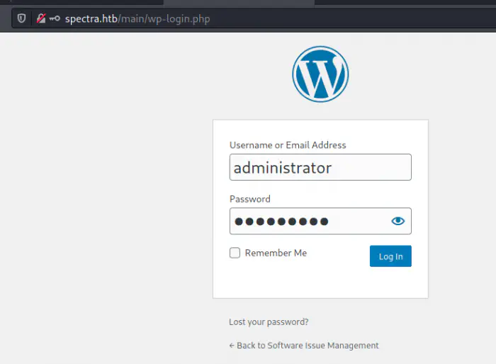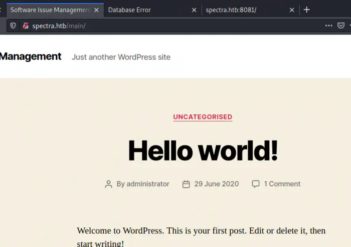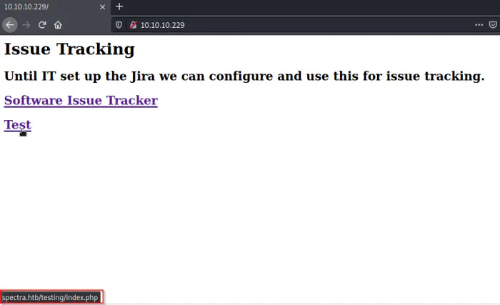 When I looked at the webserver, I found out that the hostname of the target is spectra.htb.