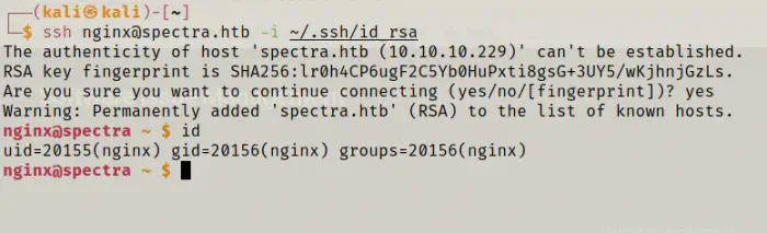 ssh nginx@spectra.htb -i ~/.ssh/id_rsa