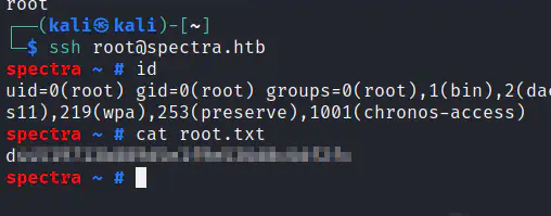 ssh root@spectra.htb -i ~/.ssh/id_rsa