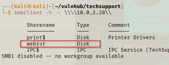 As we can see from the screenshot above, there is a web server and SMB server that I needed to enumerate further. Also, it’s better to check for the shares that have anonymous access to the SMB server. Also, there is a tool called enum4linux that does all the enumeration. However, I would using the simple smbclient tool.