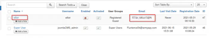 Using these credentials, we can login to the joomla CMS and get the user’s list. On the user’s list, we have a user elliot, whose email looks like password of the user for the target machine.