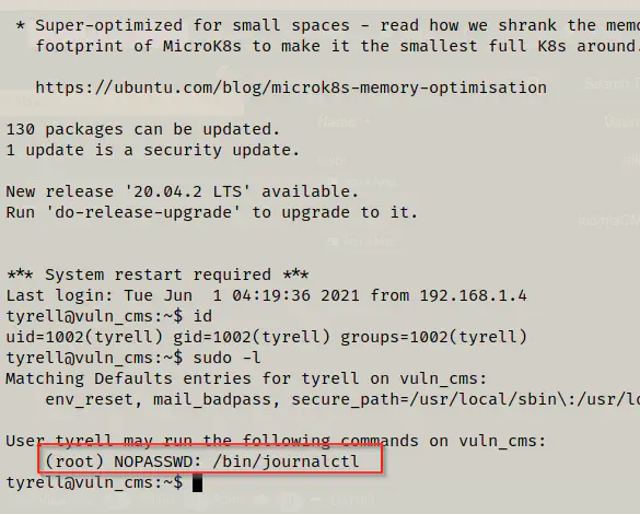 Reference: https://gtfobins.github.io/gtfobins/journalctl/