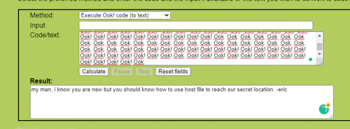 I am afraid now seeing these Ook messages with different punctuations. Maybe it’s some encoded message. We will search the internet for this.
