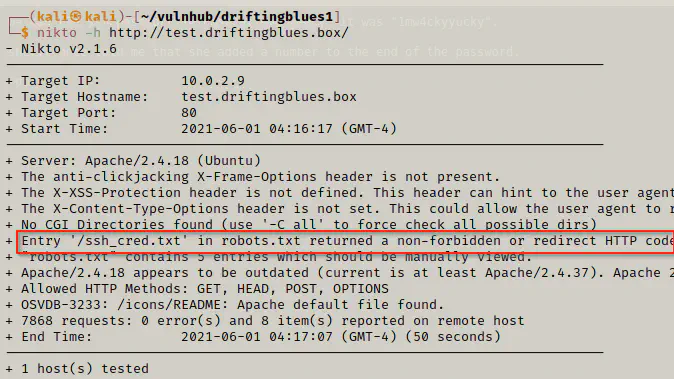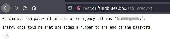 We found out a vhost test.driftingblues.box. Hence, we will also be adding this host to our hosts file.
