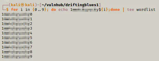for i in {0..9}; do echo 1<snip>y${i};done | tee wordlist