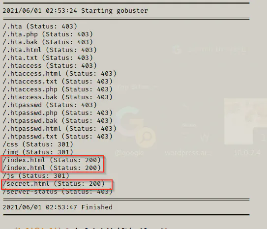 We have secret.html and index.html files. So, we can open them in browsers or use curl for the sake of saving time.