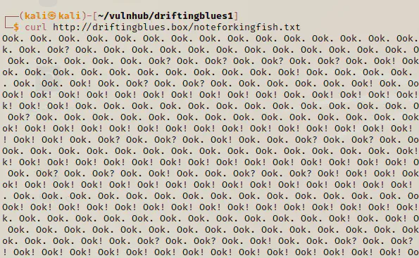 I learnt about Ook encoding from this machine. Other than that, we got to use gobuster vhost enumeration. Since the machine was labelled as easy, it is easy. I will do driftingblues2 soon.