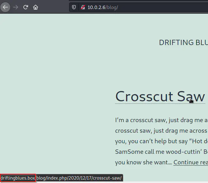 On hovering a link in the blog, we saw that the hostname for the ip is driftingblues.box. So, we will be changing that in our /etc/hosts file.