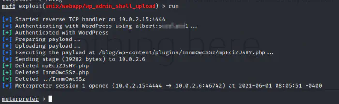 We found out the username and password of the wordpress user. Now, we have two ways to get a reverse shell. One is using metasploit framework whereas another is manually adding the php shell to the theme’s php files. I will show you both of the methods.