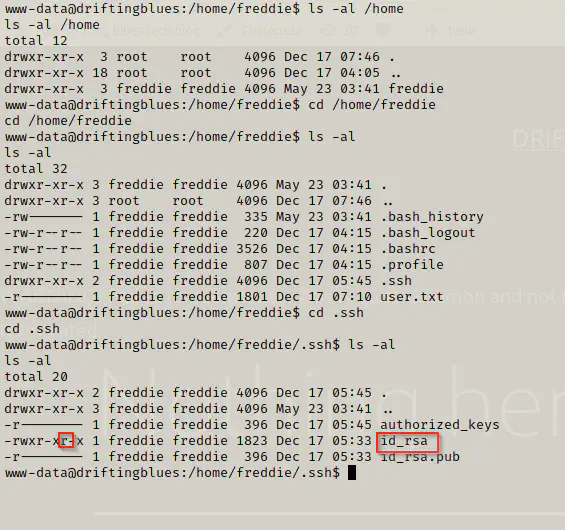 As we can see above, there is a private key with ‘read’ permission to other users. Now, we can open that and copy the content. After that, we can paste the content into a file in our local machine and change the permission. I am naming the file as id_rsa.