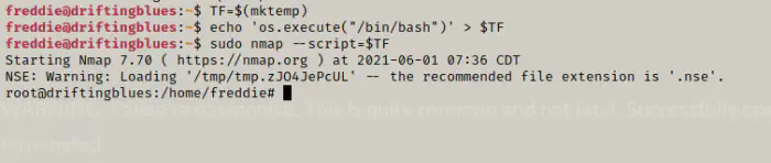 Therefore, we have to use the way of nmap 7.70 to get root shell.