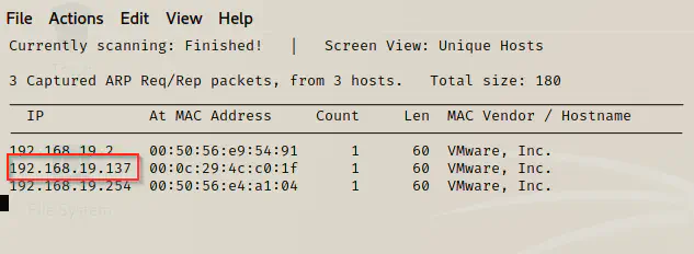 sudo netdiscover -i eth0 -r 192.168.19.0/24