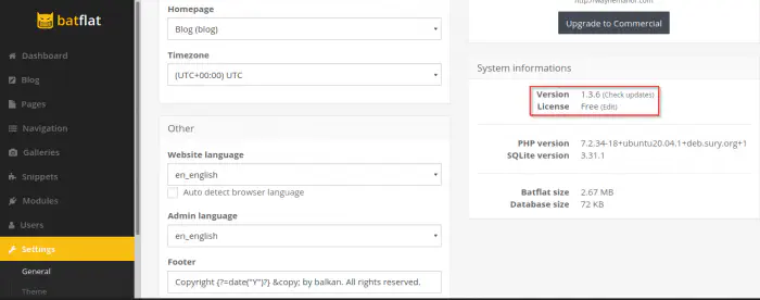 I got the admin login page and I logged in using the credentials. The CMS was batflat and its version was 1.3.6.